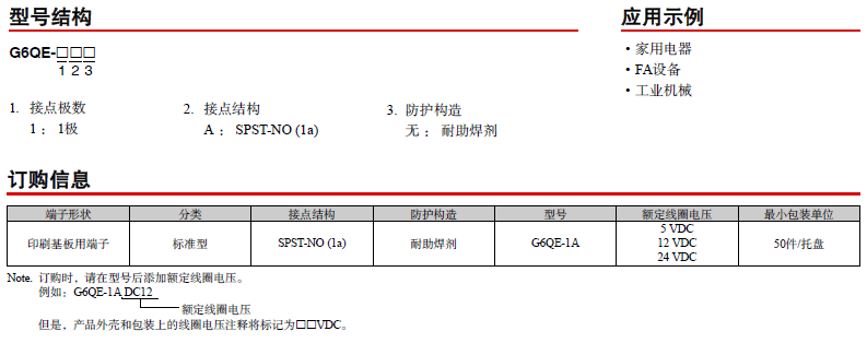 小型大容量功率繼電器G6QE