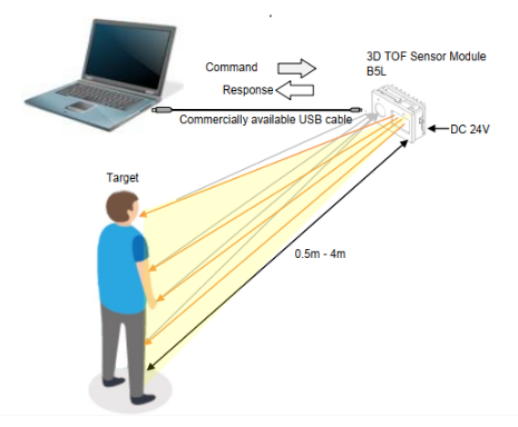 TOF是飛行時間(Time of Flight)技術的縮寫,即傳感器將調(diào)制過的近紅外光以光脈沖的形式不斷發(fā)送出去,遇到物體后會產(chǎn)生反射,當傳感器接收到從物體返回的光脈沖時,通過計算光線往返的飛行時間或相位差得到待測物體的3D深度信息或目標物距離。歐姆龍新推出的B5L系列傳感器模組是一款高精度3D TOF測距傳感器,除了可用于護理監(jiān)控,也可應用于服務類機器人、倉儲物流、自動門或電梯等產(chǎn)品。