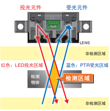 歐姆龍新推出傳感器B5W(原理如圖)是一款不易受顏色和材質(zhì)影響的限定反射型。 鏡面、黑色、透明物體也都會檢測出來限定位傳感器,檢測范圍廣,因此耐物體位置偏移強不易受外部干擾影響。接受來自檢測物體的反射光以檢測物體有無,擁有限定了投光光束和受光區(qū)域的光學(xué)系統(tǒng)。支持DC24V的設(shè)備內(nèi)置用,憑借由4種超環(huán)面透鏡組成的歐姆龍自行設(shè)計的結(jié)構(gòu),只需微弱的光即可實現(xiàn)穩(wěn)定檢測。