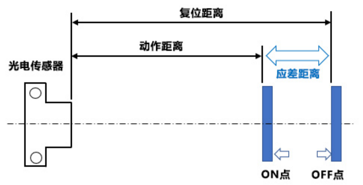 首先跟大家解釋下何為應(yīng)差,應(yīng)差簡(jiǎn)而言之就是距離,那是哪里到哪里的距離呢?下文會(huì)為大家做一個(gè)詳細(xì)的舉例說(shuō)明,其文字描述為反射型光電傳感器時(shí)間動(dòng)作距離與復(fù)位距離之差,稱(chēng)為“應(yīng)差”。