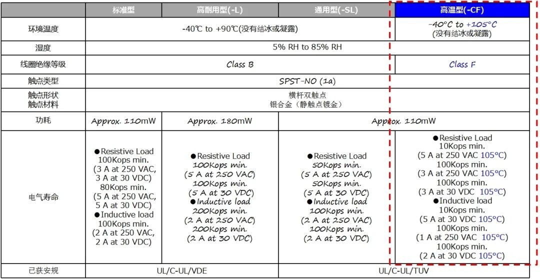 這款繼電器專為高溫應(yīng)用而設(shè)計,能夠在高達105℃的環(huán)境中穩(wěn)定運行。其具備5mm寬度(20×5.08×12.5mm)的緊湊設(shè)計,以及5A大分斷性能。此外,這款繼電器憑借僅110mW的線圈功耗,實現(xiàn)了高效節(jié)能。