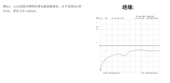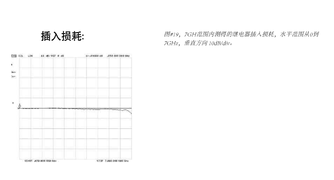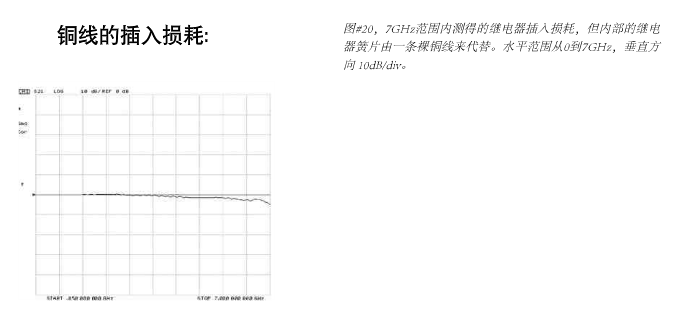 干簧開關的簧片已被一條純銅線所代替比較圖#19和#20兩圖的區別非常小或幾乎一致。當然在傳輸大功率信號時還是有些細微差別的。但我們的許多應用的情況下信號功率都是非常低的因此我們在7GHz之前所存在的差異是可以忽略不計的。