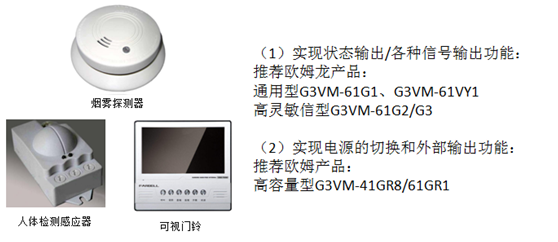 (1)安防設備應用:比如煙霧探測器、人體檢測感應器、可視門鈴等,繼電器在產(chǎn)品上起的作用主要為產(chǎn)品狀態(tài)指示、控制照明電源切換等。