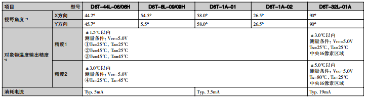 ●擁有90度的廣視野角度,可檢測(cè)廣范圍的區(qū)域溫度。例如,對(duì)于原需裝配4個(gè)45度視野角度傳感器的區(qū)域,僅需用1個(gè)傳感器即可檢測(cè)。