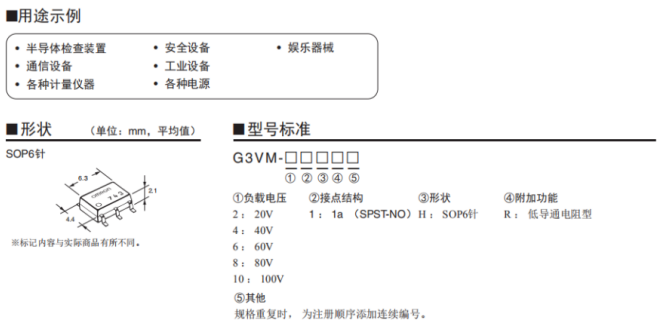 行業(yè)超小級別的低驅動電流0.2mA超高靈敏度型,例如:(G3VM-61G3,G3VM-201G2,G3VM-401G1)
