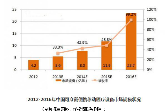 這里我們給大家介紹一款智能手環(huán),配有OMRON高精度氣壓的傳感器(2SMPB),結(jié)合智能手環(huán),可測量和記錄老人的血壓、睡眠、心率等身體健康指標,自動生成健康報告,自動發(fā)送給提前預(yù)設(shè)的家人及家庭醫(yī)生,提出健康及飲食建議。如此完美的可穿戴設(shè)備,實在是讓人無法不愛!在醫(yī)療行業(yè),此類型的可穿戴設(shè)備發(fā)展還呈現(xiàn)上升狀態(tài)!如下圖描述: