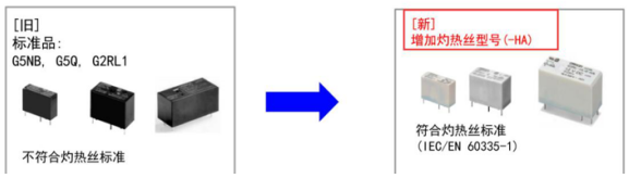 而我們的歐姆龍繼電器G5NB/G5Q/G2RL系列為此推出灼熱絲帶-HA型號,兩者的區別就在于外殼和基座的塑料材質是否為阻燃材料。