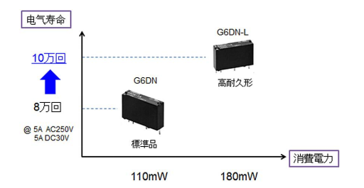 與傳統(tǒng)的工業(yè)用繼電器不同,工業(yè)自動(dòng)化行業(yè)對(duì)于電子繼電器有著更高的要求,為滿足這一市場(chǎng)要求,日前,歐姆龍?zhí)貏e推出了G6DN系列繼電器,可用于工業(yè)自動(dòng)化設(shè)備內(nèi)部PCB板上,實(shí)現(xiàn)高電流切換5A( AC250V、DC30V )及交叉雙觸點(diǎn)實(shí)現(xiàn)高可靠性。該產(chǎn)品包括標(biāo)準(zhǔn)型和-L型兩種型號(hào),其中,G6DN-L相較于G6DN標(biāo)準(zhǔn)型擁有更高電氣壽命。