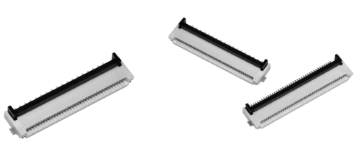 ●旋轉后鎖方式(0.5mm間距、1.0mm間距雙面觸點型、上觸點型),利用旋轉后鎖方式,改善了FPC/FFC電纜的連接器插入性,實現了可確認操作完成的鎖定感。備有同一構造0.5mm、1.0mm間距的兩種產品;接觸點構造備有雙面觸點和上觸點型兩種(上觸點型只有0.5mm間距);備有鍍金、鍍錫兩種(鍍錫僅限2接點型),適用FPC/FFC厚度t=0.3mm.
