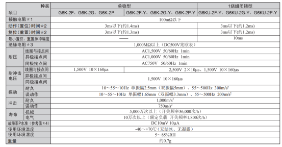歐姆龍信號繼電器G6K系列的性能: