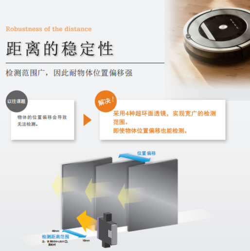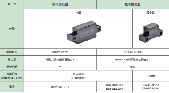 歐姆龍限定反射傳感器B5W-LB系列檢測范圍廣,因此耐物體位置偏移強,不易受外部干擾影響的設計。備有模擬電壓輸出和數(shù)字輸出兩種輸出模式。