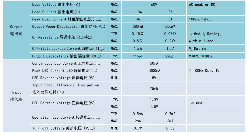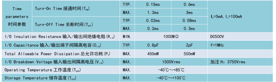 (Relay 光 MOS 繼電器 SOP4),Product Model產品型號:BCY212G2S/BCY212GS,Contact Form 觸點形式:1a,Ambient Temperature 25'C,測試環境溫度 25°C