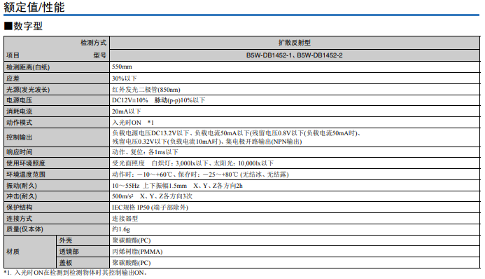 歐姆龍光電傳感器B5W-DB的特點(diǎn)