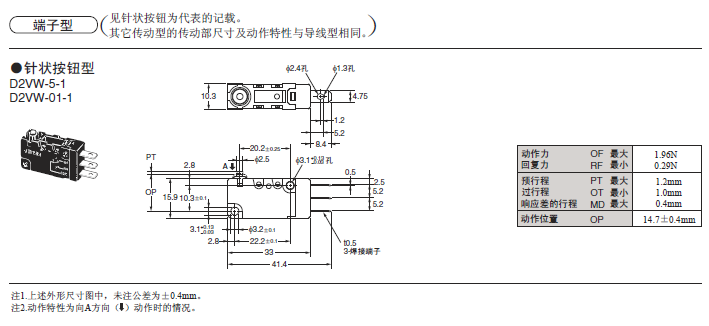 D2VW-5 密封型基本開關(guān) 密封型(符合IP67:除端子部 以外)的小型基本尺寸 采用環(huán)氧樹脂來確保穩(wěn)定的密封性。可以在會淋水或多塵埃的地方使用。 內(nèi)部結(jié)構(gòu)采用廣受好評的V系列的結(jié)構(gòu),實現(xiàn)高精度和長壽命。安裝也和V系列相同。 可在汽車、農(nóng)業(yè)機械、大型家電、辦公設(shè)備等有耐環(huán)境性要求的場合使用。