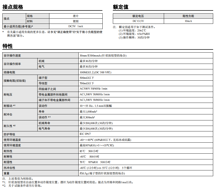 歐姆龍微動開關(guān)