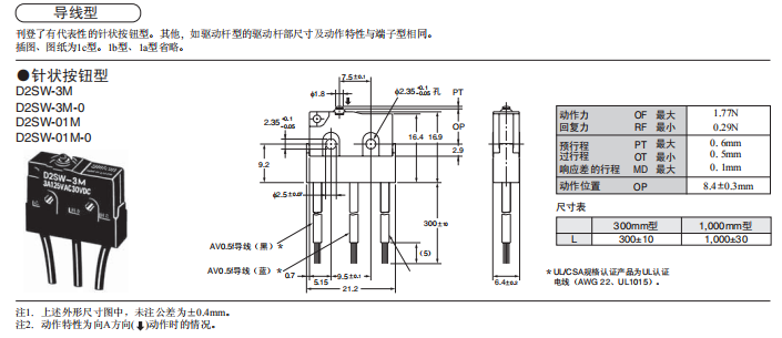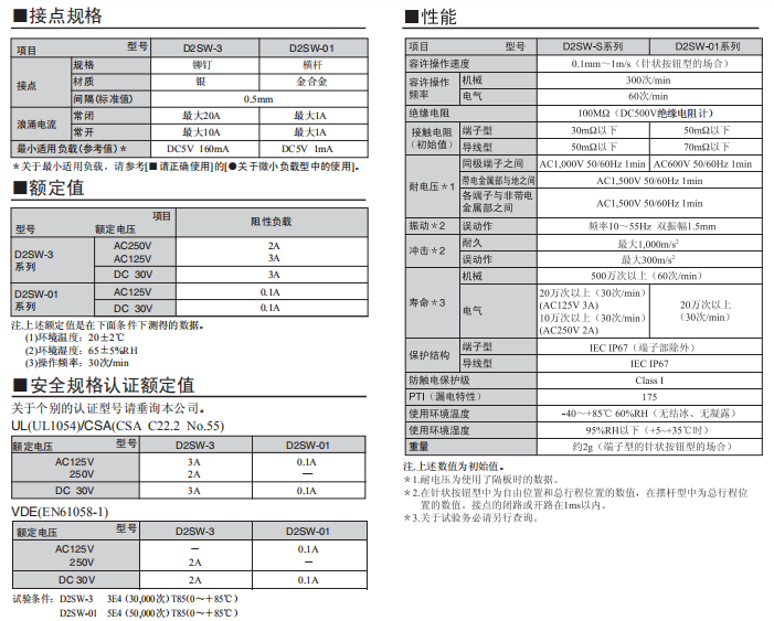 D2SW 密封型超小型基本歐姆龍開關