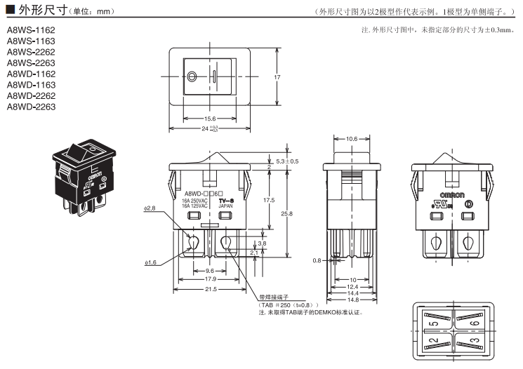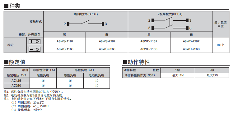 A8WD-1163船形歐姆龍開關