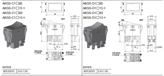 A8GS-C1285遠(yuǎn)程復(fù)位船形歐姆龍開關(guān)