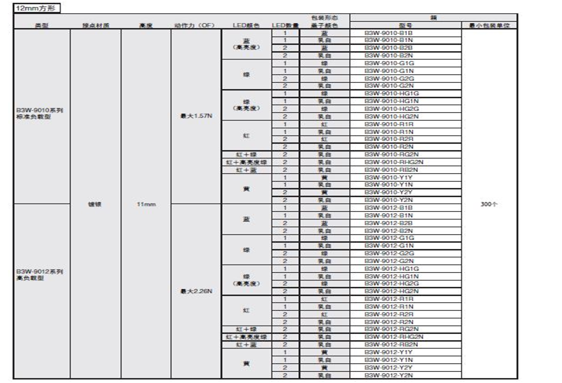 B3W-9000系列歐姆龍輕觸式開(kāi)關(guān)