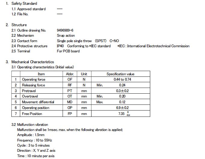 D2FC-F-7N (20M) 克力為:60+/-15G,壽命為2000萬次;