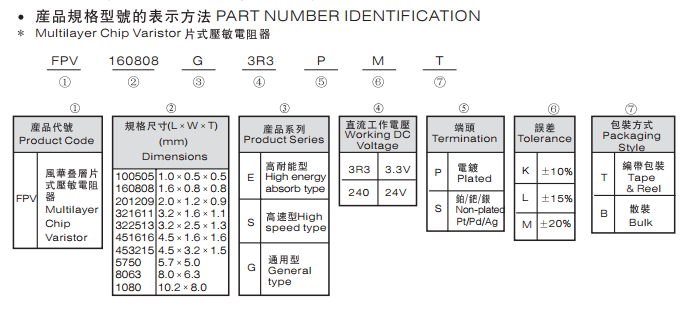多層片式壓敏電阻器 FPV8063E150SKB